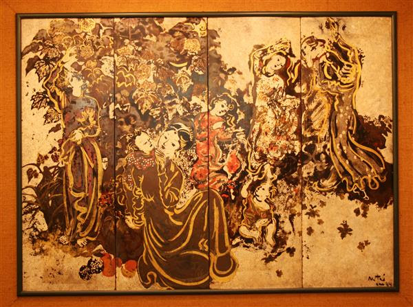 Nguyễn Gia Trí, “Vườn xuân Trung Nam Bắc”. 1970-1990. Sơn mài. Bảo tàng Mỹ thuật Tp.HCM